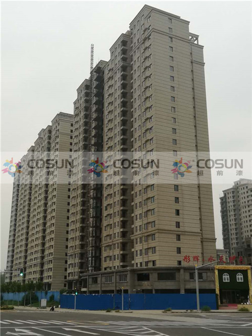 超前涂料 CCTV黃金展位合作伙伴洛陽彤輝·水天伊色工地面積18萬平方,甲方經過層層篩選,超前涂料以高質量、高品質、過硬的技術團隊、完善的售后服務,成為該小區(qū)指定外墻用漆供應商,項目中真石漆為指定產品。