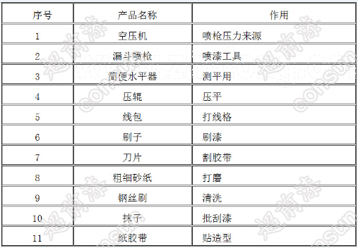 注:除以上配套材料外,尚需基層局部修補用的水泥、沙子、建筑膠等。
